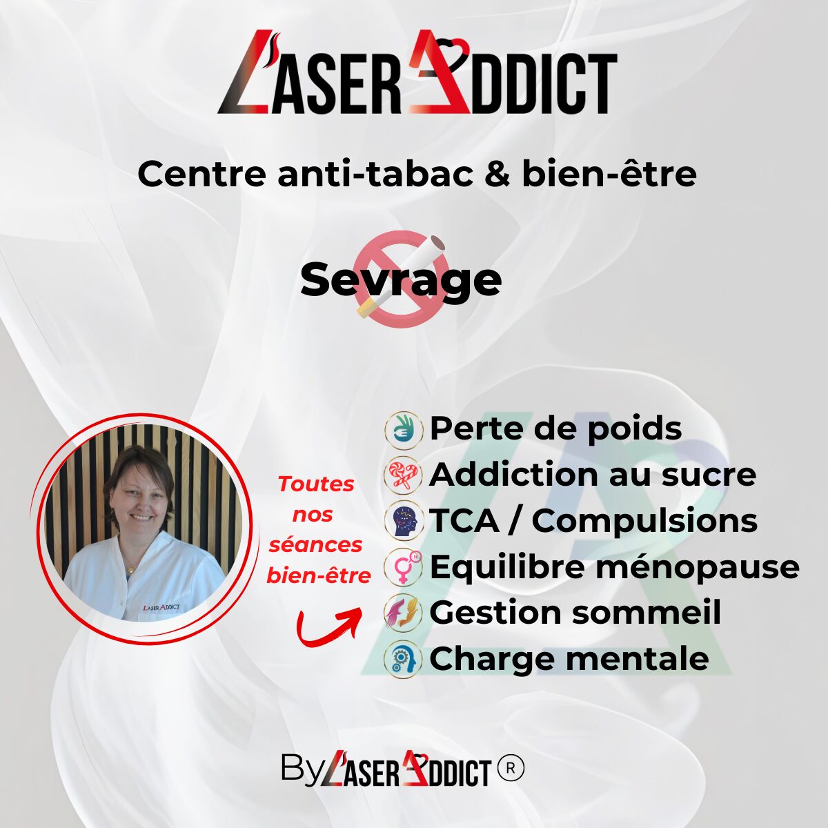 Formée à la technique au laser et de coaching avec la méthode LaserAddict je suis à votre écoute pour vous accompagner dans le sevrage tabagique ou cannabis ! Je vous accompagne également dans votre perte de poids, vos troubles liés à la gestion du sommeil, à la charge mentale et à l’équilibre ménopause. Si vous avez une addiction au sucre, je suis là pour vous aider ! Je vous reçois tous les jours dans mon centre LaserAddict ! Au plaisir de vous recevoir à Sélestat.