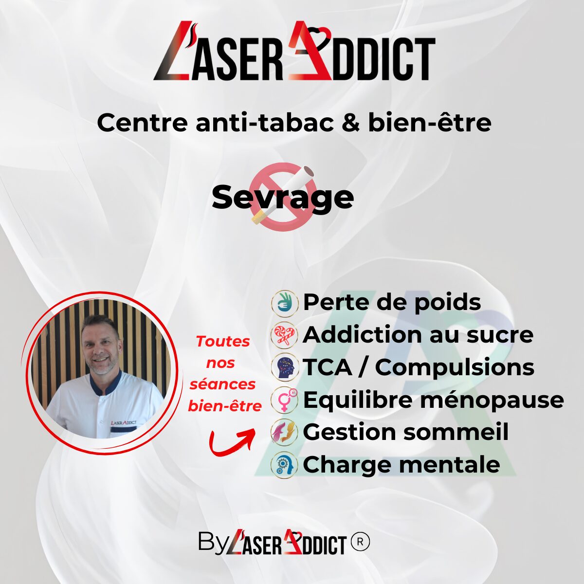 Formé à la technique au laser et au coaching en réflexologie auriculaire, je vous accompagne dans le sevrage du tabac et du cannabis. Cette méthode permet de vous aider à gérer votre stress, vos insomnies, vos acouphènes et également à perdre du poids et réduire la consommation de sucre. Mon approche est fondée sur l’écoute et le respect de chaque individu. Mon engagement : être à l’écoute de chaque besoin et accompagner mes clients avec bienveillance vers un mieux-être. Au plaisir de vous recevoir tous les jours au centre LaserAddict d'Orléans !